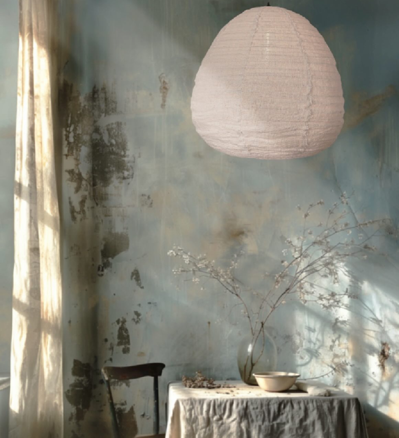 The KAPOK PEAR ceiling light in natural linen and cotton perfectly embodies the sophisticated, poetic spirit of the Nara Minuit collection by JOLI JOUR PARIS, but will also blend in perfectly with the traditional, handcrafted spirit of the Sienna Terra collection. This suspension lamp will give your interior a timeless and unique elegance. Its design brings a bohemian and organic touch to any space, adding an artistic dimension to your interior design.