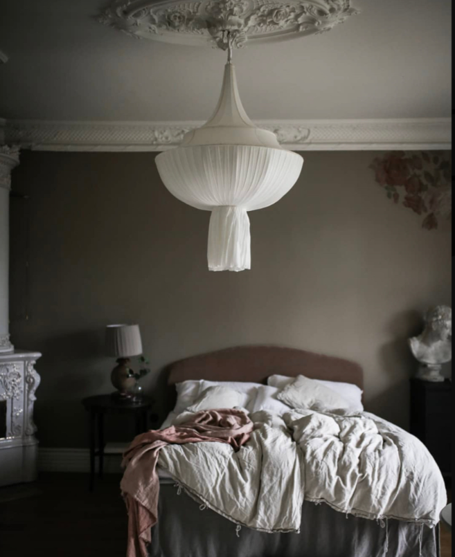 The MEDUSE ceiling lamp in white silk perfectly embodies the sophisticated spirit of the Nara Minuit collection by JOLI JOUR PARIS. This suspension lamp will give your interior a unique, timeless elegance. Its design brings a poetic and organic touch to any space, adding an artistic dimension to your interior design.