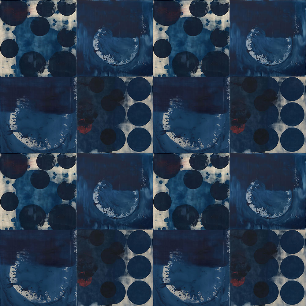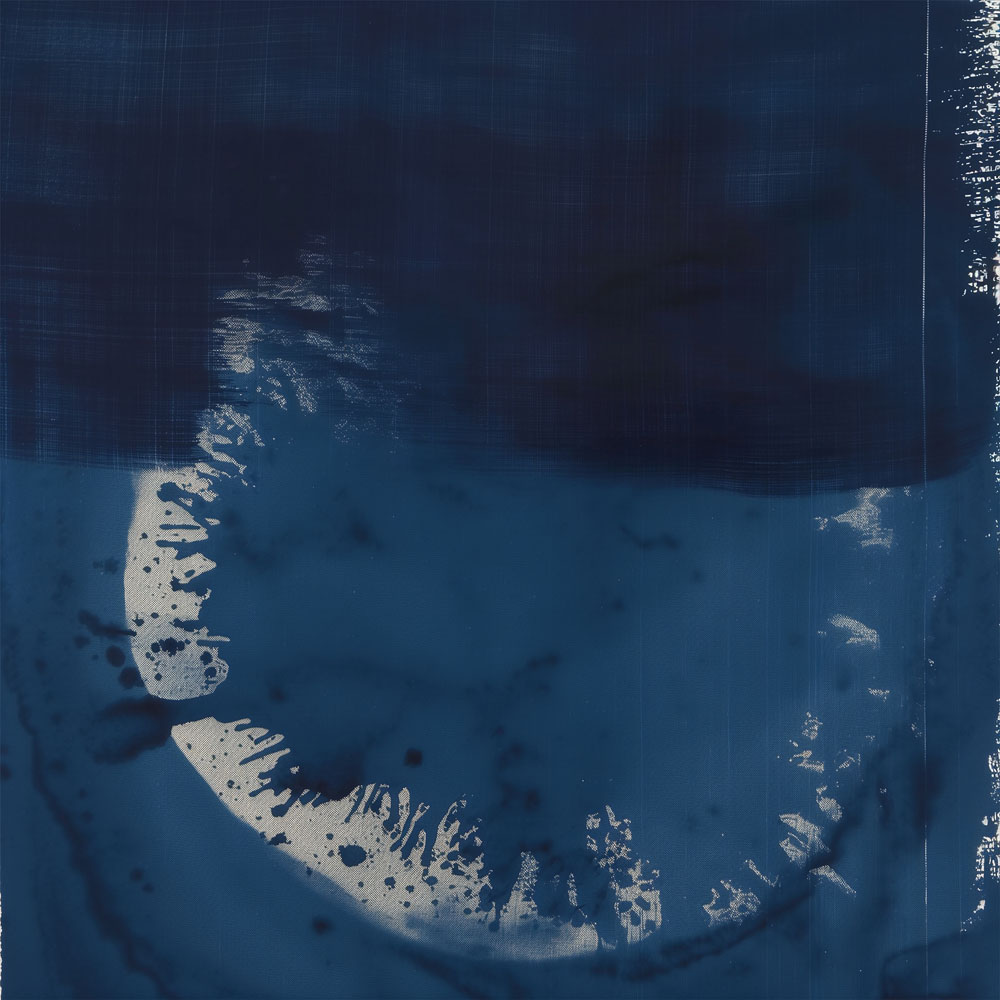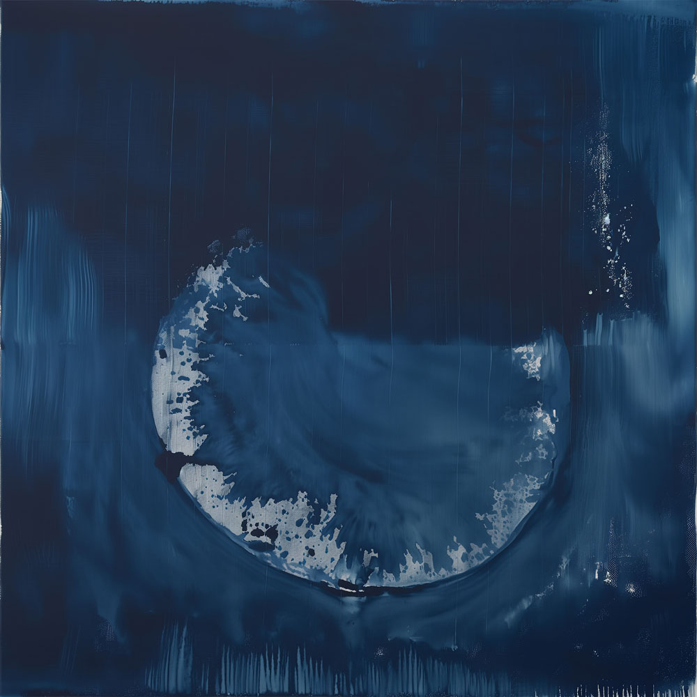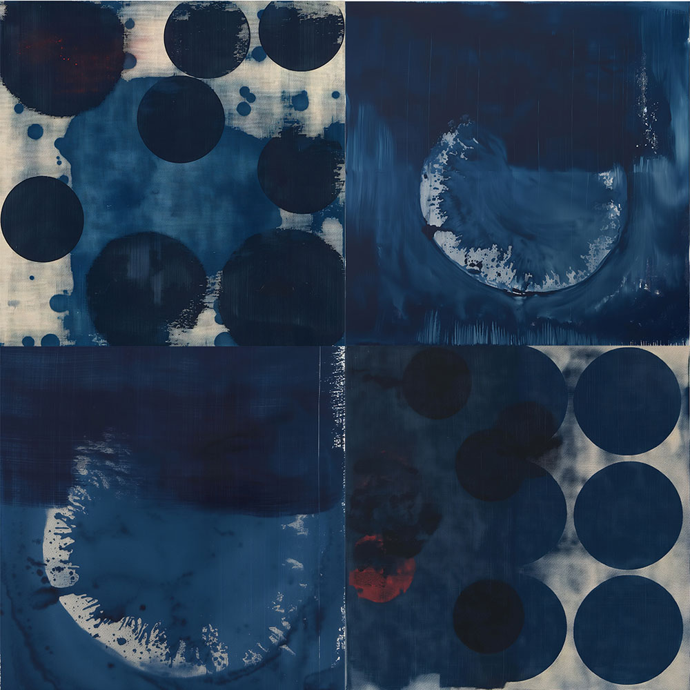 Unique artistic rendering inspired by Japanese cyanotypes and shibori