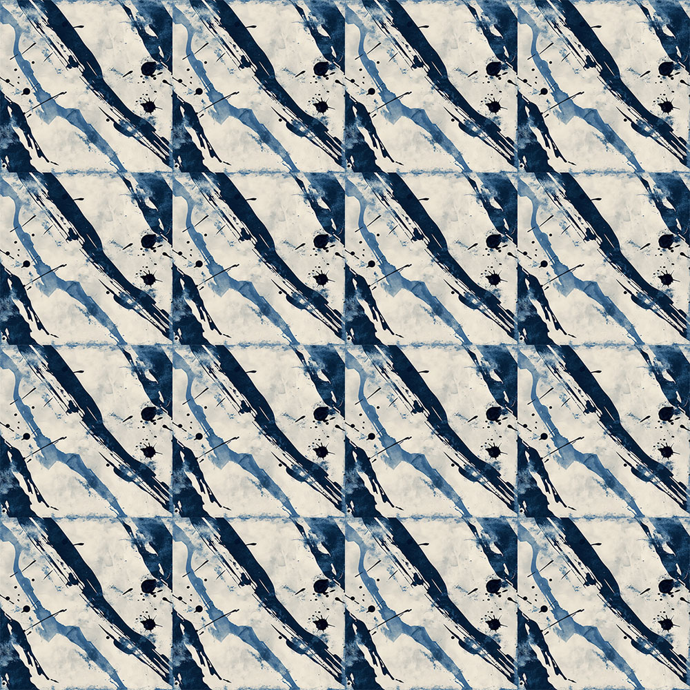 Available individually (one 48×48 cm sheet of wallpaper) or in a box of 16 sheets of wallpaper Unique artistic rendering, inspired by Japanese cyanotypes and shibori Easy to hang or frame.
