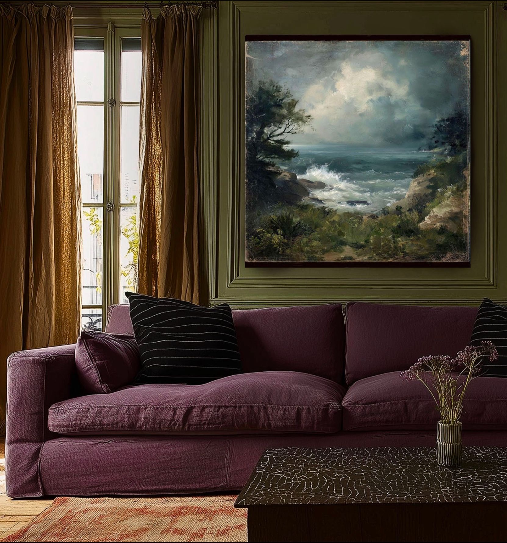 Finition toile de lin et coton violet