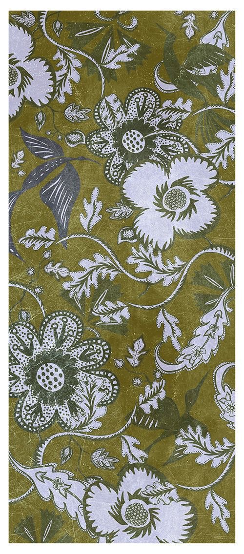 L’indienne jaune, verte ou mauve : une réinterprétation contemporaine et gourmande du motif floral traditionnel, en coloris absinthe, miel ou prune.