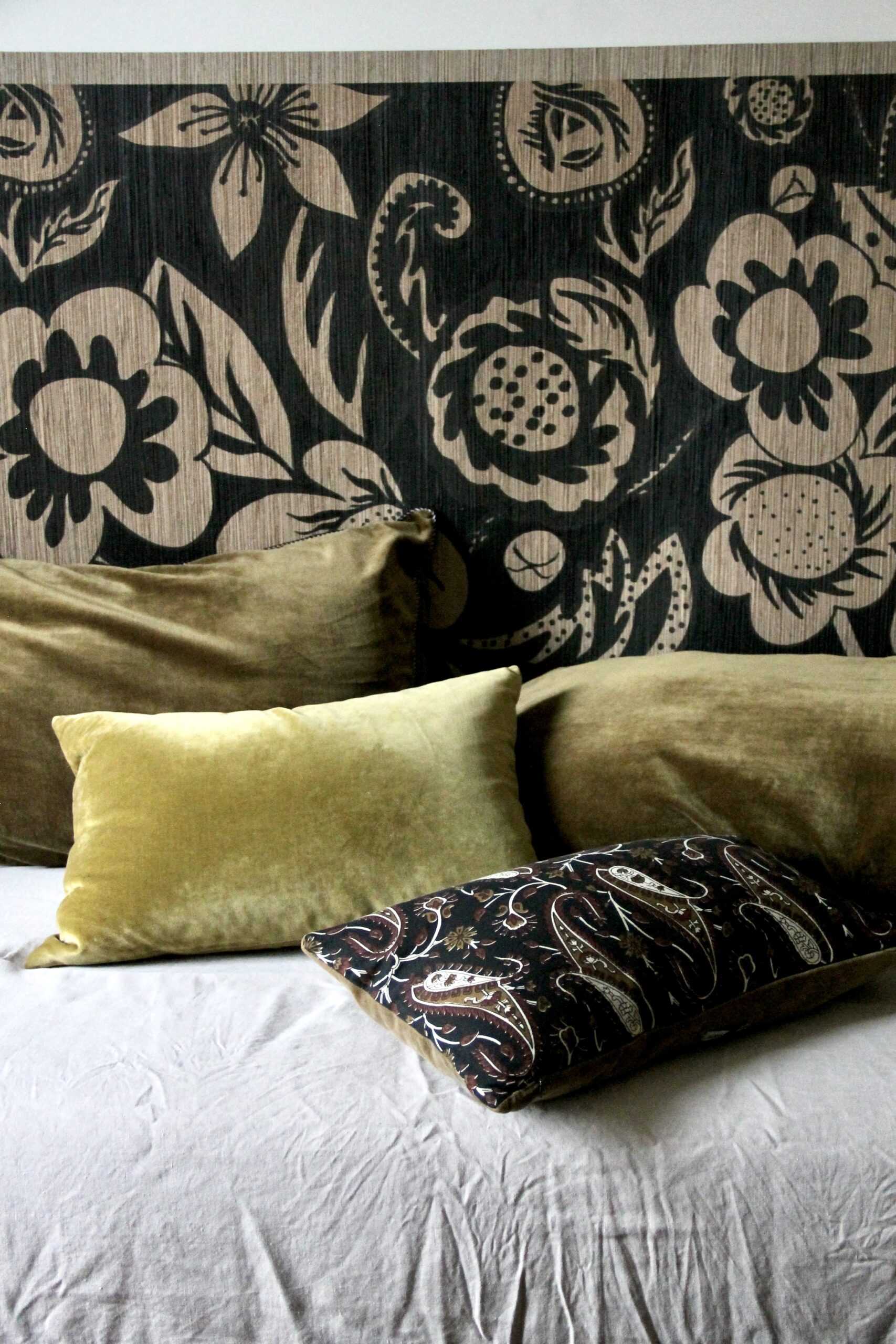 Encollés directement au mur, comme un lé de papier peint, à l’aide d’une colle à papier peint adaptée aux supports textiles